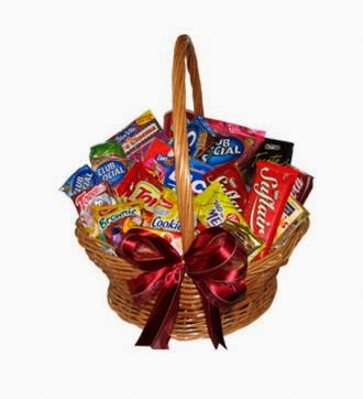 Cesta de Natal - Avós adoram “coisinhas” para comer. N Uma cesta bem bonita com vários tipos de guloseimas natalinas, um licor e chocolates.
